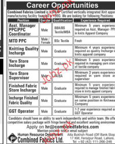 Assistant Manager, MTO PPC, Yarn Store Incharge Wanted