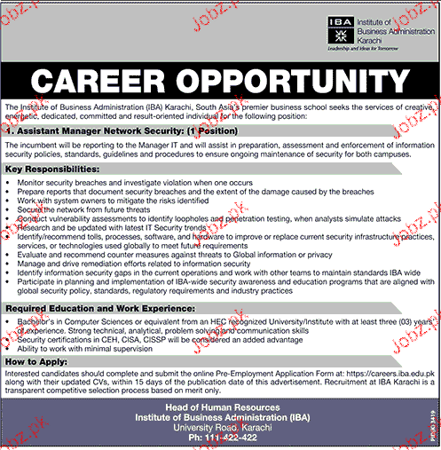 Apply as per details in job advertisement. Login to view further details of how to apply via https://www.jobz.pk online.