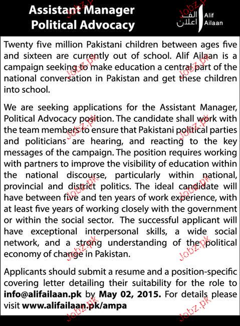 Apply as per details in job advertisement. Login to view further details of how to apply via https://www.jobz.pk online.