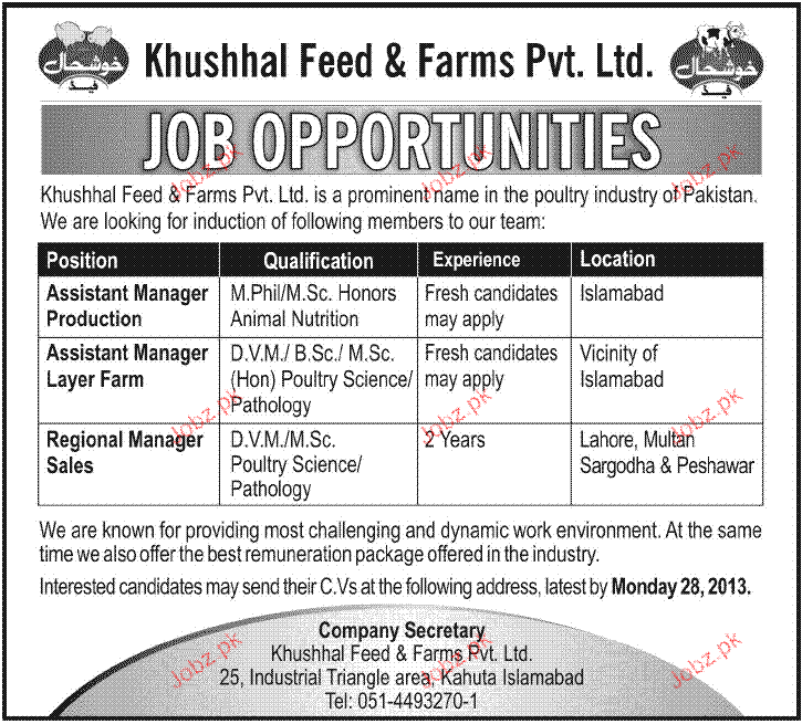 Apply as per details in job advertisement. Login to view further details of how to apply via https://www.jobz.pk online.