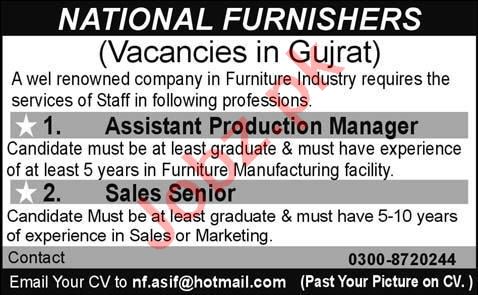 Vacancies in National Furnishers Pvt Limited Advertisement November 2020