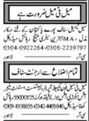 Vacant posts including field worker, secretary, receptionist, office boy, assistant manager and computer operator are announced in Private Company Multan, multan Punjab Pakistan as per 19 March 2022 advertisement in daily Khabrain Newspaper. Preferred Education is Matric, Bachelor and Intermediate etc.