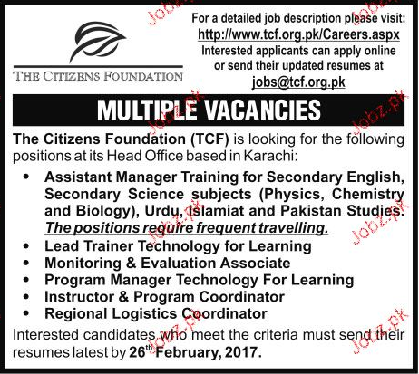 Apply as per details in job advertisement. Login to view further details of how to apply via https://www.jobz.pk online.