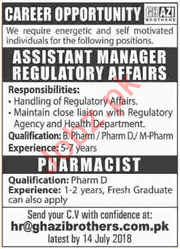 Assistant Manager Regulatory Affairs & Pharmacist Jobs 2018