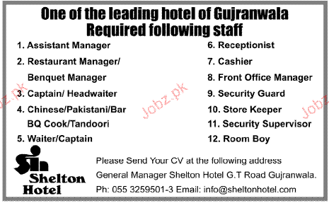 Latest Private Company Hotel Posts Gujranwala 2025