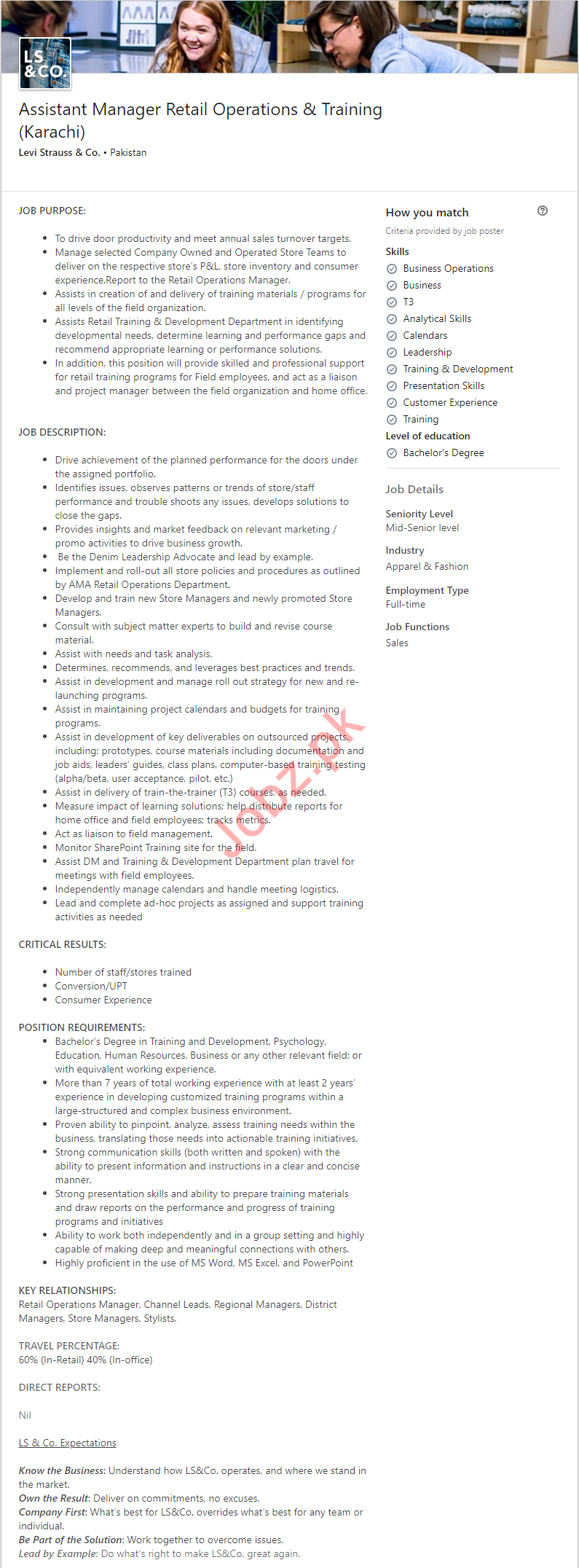 Latest Levi Strauss & Co Management Posts Karachi 2025