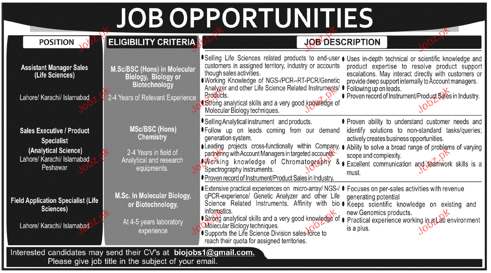 Apply as per details in job advertisement. Login to view further details of how to apply via https://www.jobz.pk online.