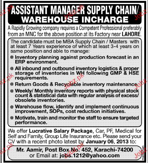 Apply as per details in job advertisement. Login to view further details of how to apply via https://www.jobz.pk online.