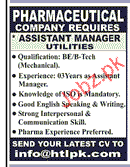 Assistant Manager Utilities Job Opportunity