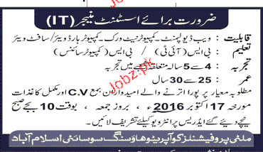 Apply as per details in job advertisement. Login to view further details of how to apply via https://www.jobz.pk online.