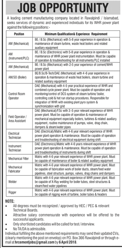 Assistant Manger Mechanical Job In Leading Cement Factory