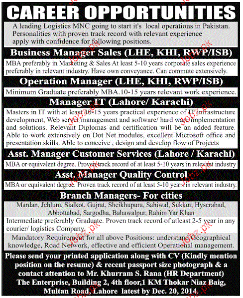 Apply as per details in job advertisement. Login to view further details of how to apply via https://www.jobz.pk online.