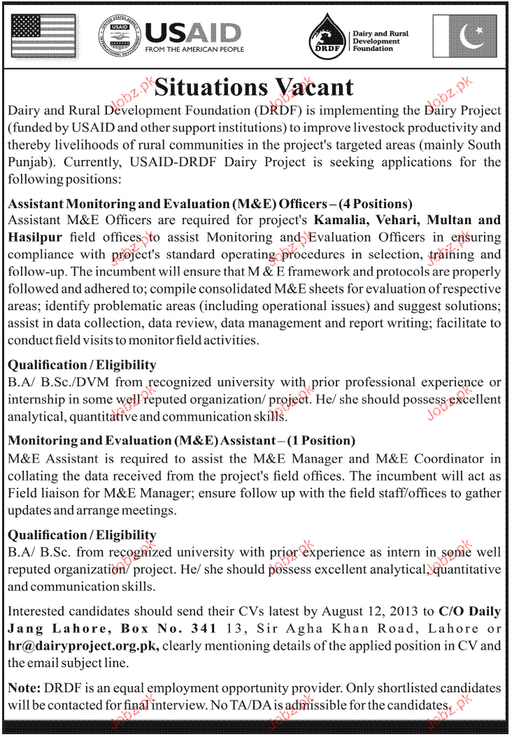 Assistant Monitoring & Evaluation Officers Job Opportunity