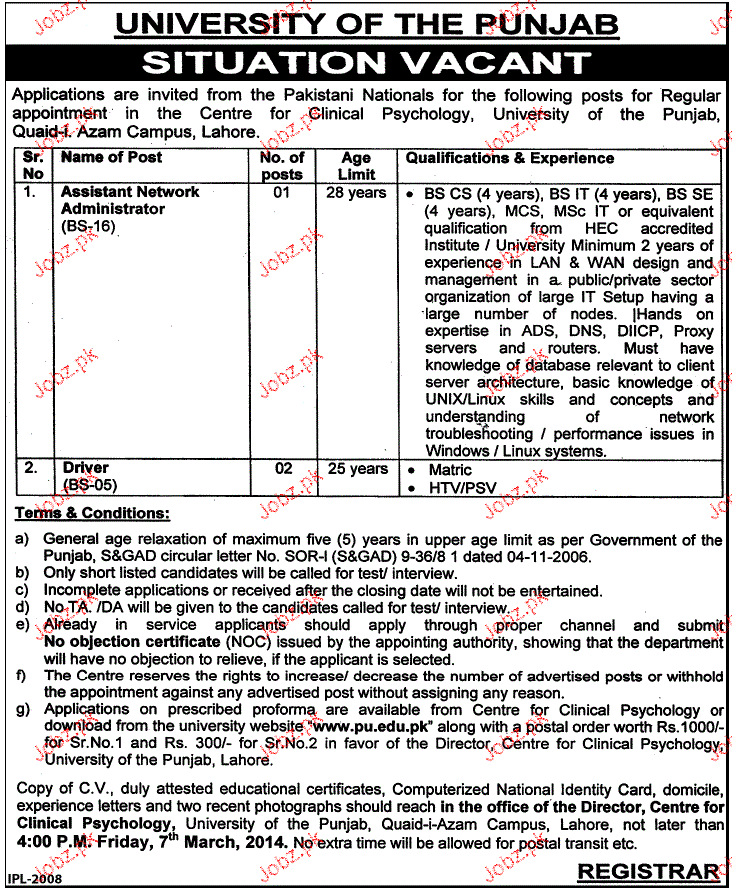 Apply as per details in job advertisement. Login to view further details of how to apply via https://www.jobz.pk online.