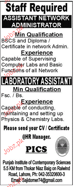 Apply as per details in job advertisement. Login to view further details of how to apply via https://www.jobz.pk online.