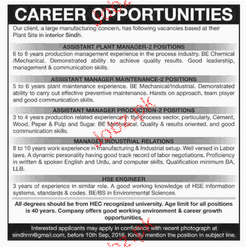 Assistant Plant Manager, Assistant Manger Maintenance Wanted