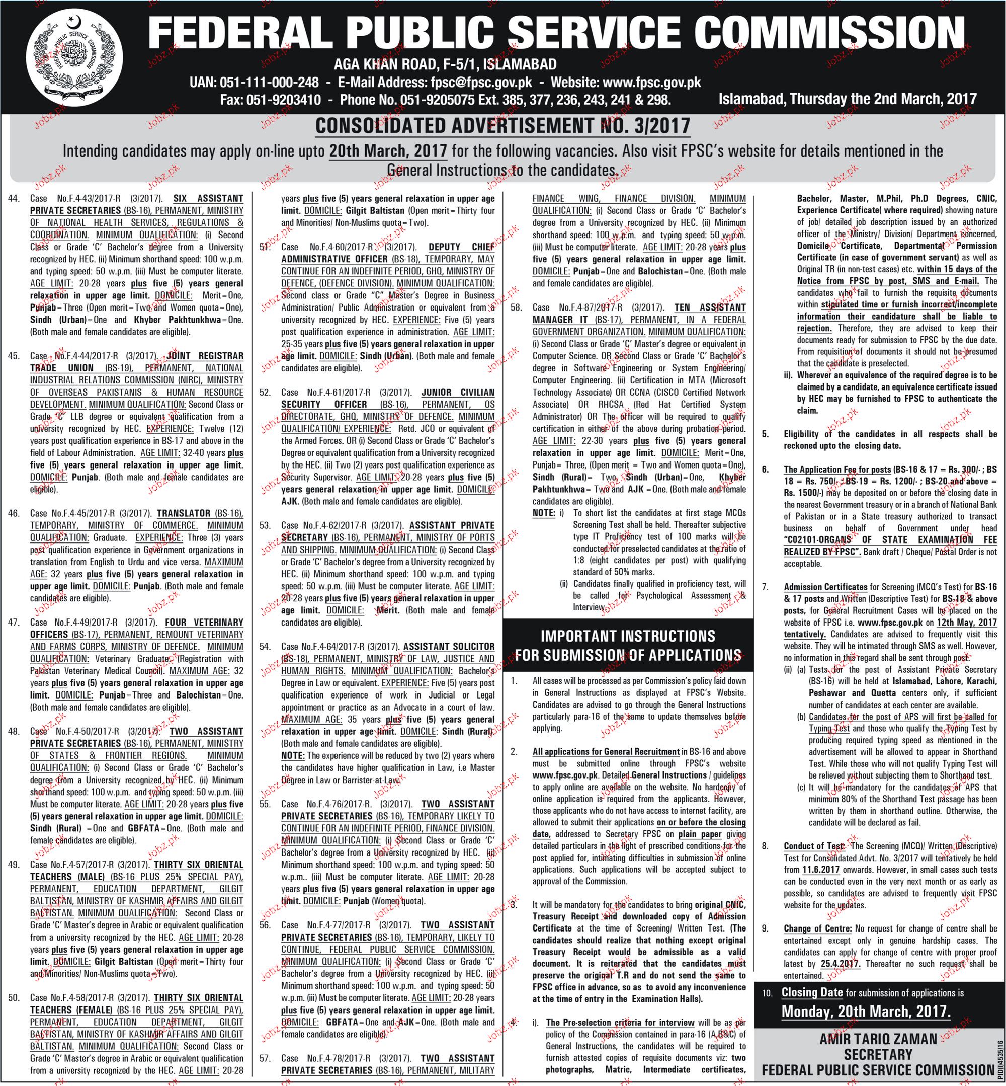 Latest Federal Public Service Commission FPSC Management Posts Islamabad 2025