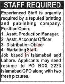 Assistant Production Manager, Distribution Officer Required