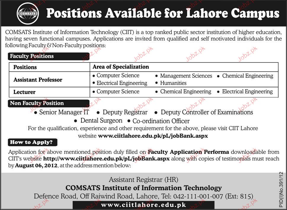 Apply as per details in job advertisement. Login to view further details of how to apply via https://www.jobz.pk online.