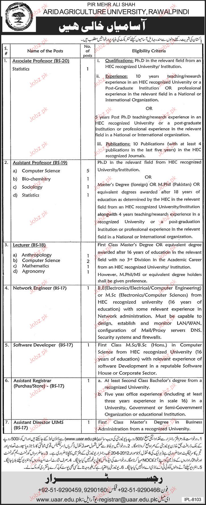 Latest Arid Agriculture University Teaching Posts Rawalpindi 2025