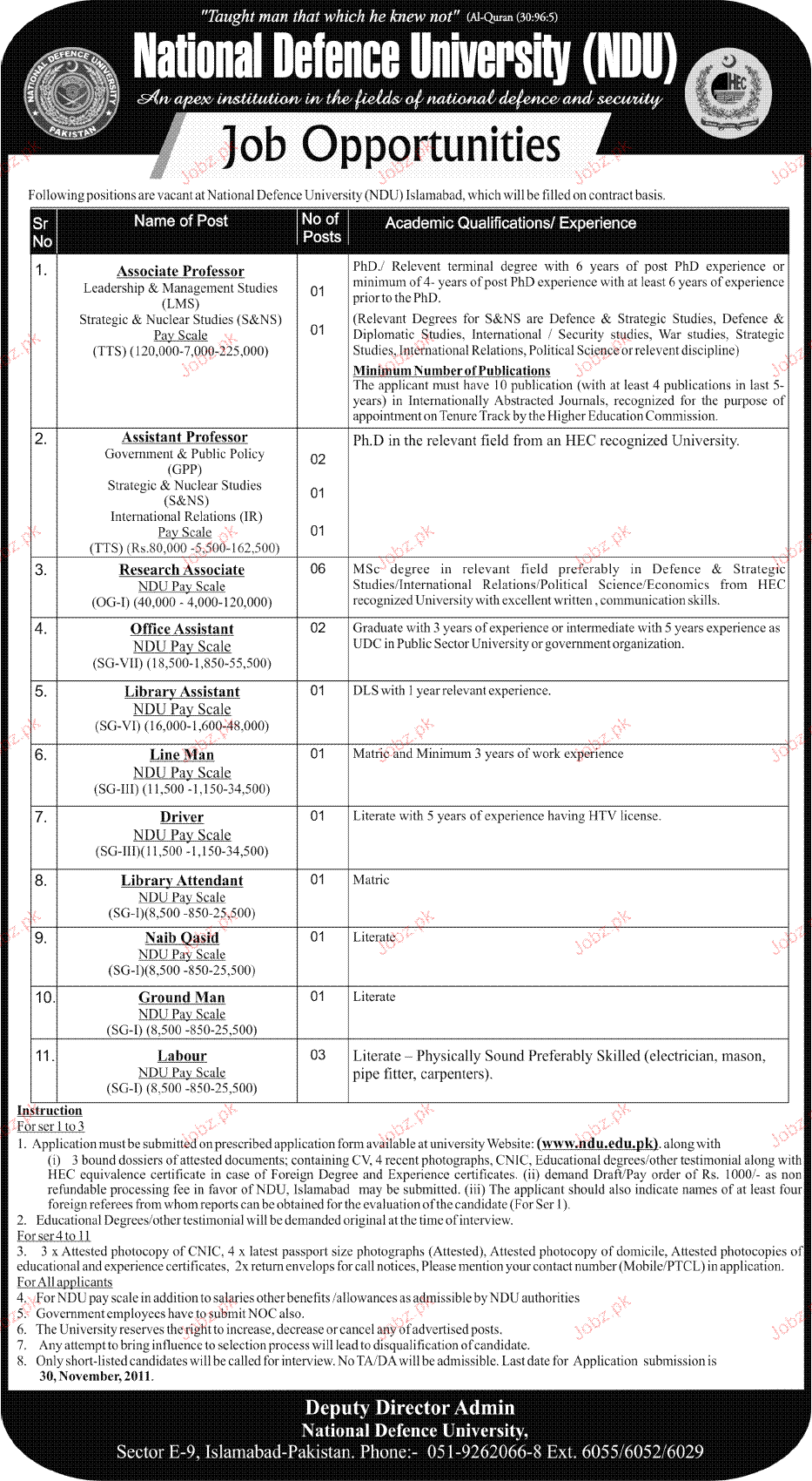 Apply as per details in job advertisement. Login to view further details of how to apply via https://www.jobz.pk online.