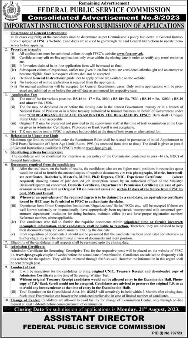 Vacancies in Federal Public Service Commission FPSC Advertisement August 2023