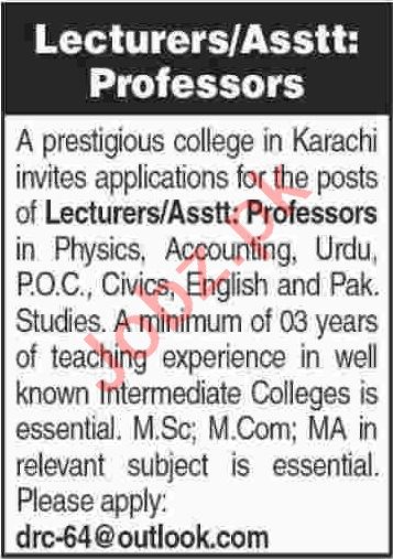 Assistant Professor & Lecturer Jobs 2020 In Karachi