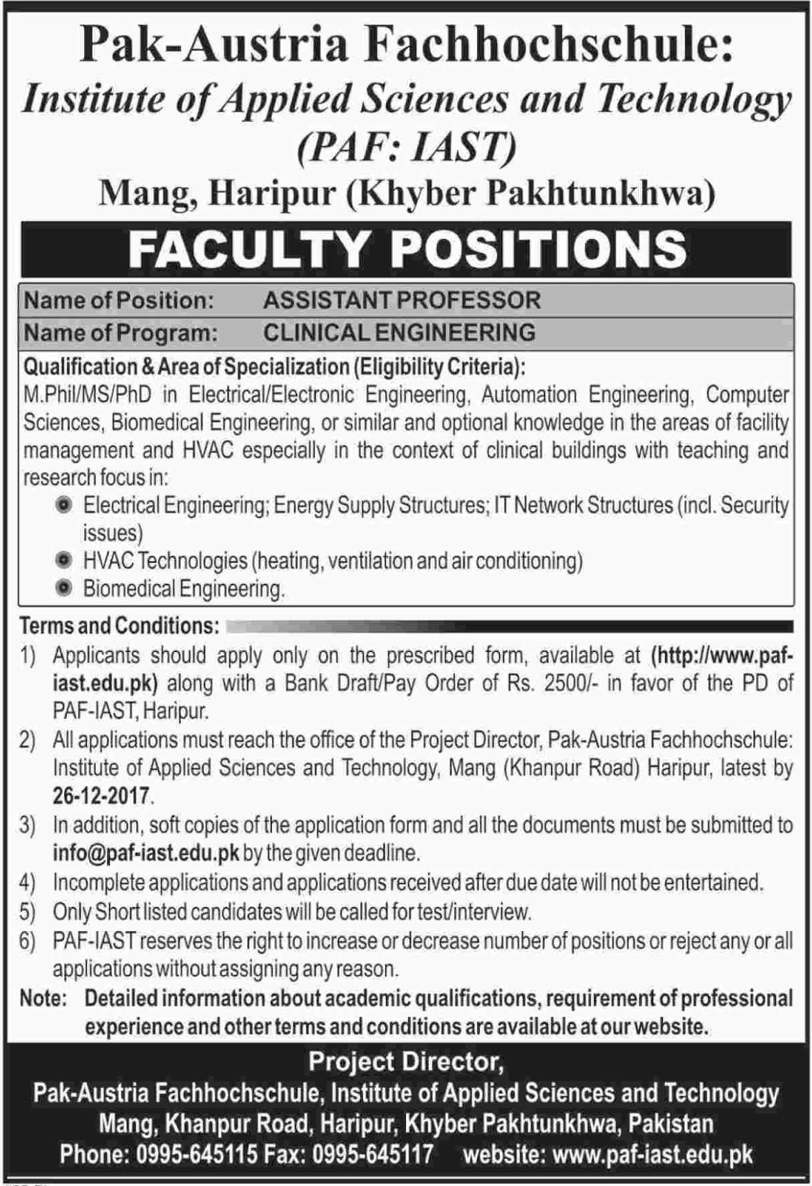 Latest Institute of Applied Sciences & Technology IAST Teaching Posts Haripur 2025