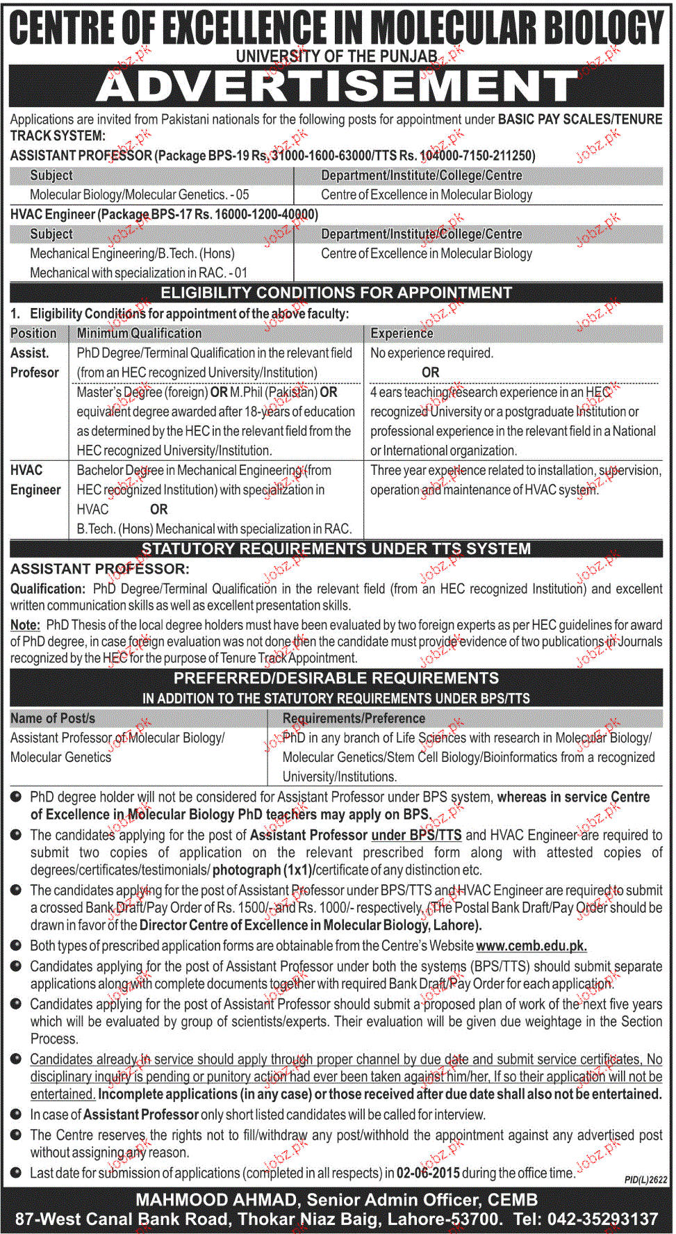 Apply as per details in job advertisement. Login to view further details of how to apply via https://www.jobz.pk online.