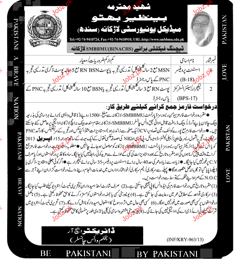 Apply as per details in job advertisement. Login to view further details of how to apply via https://www.jobz.pk online.