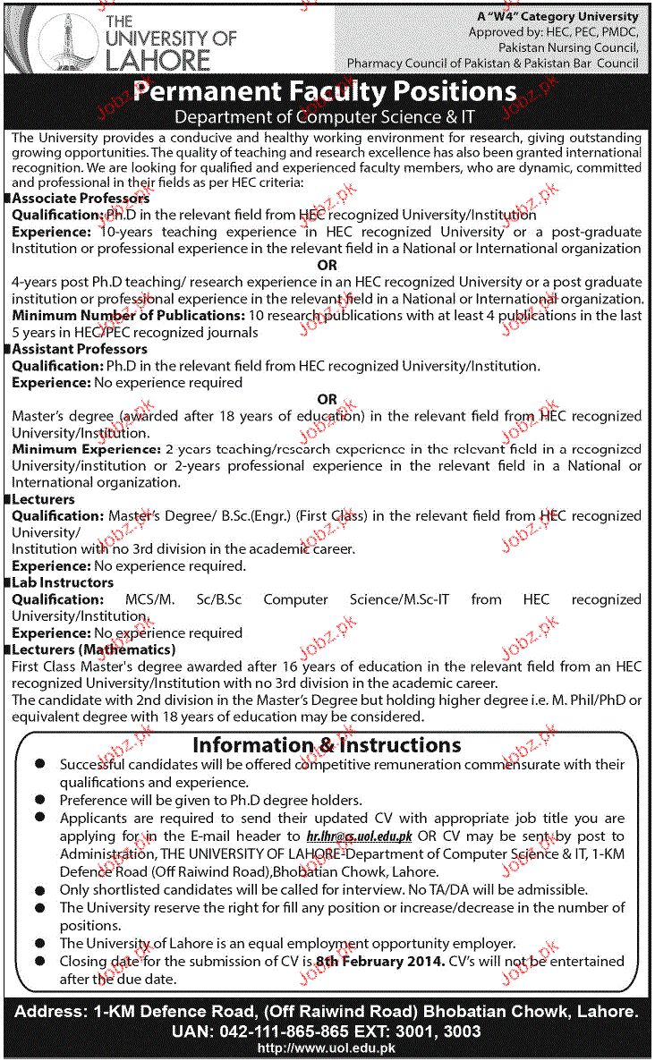 Apply as per details in job advertisement. Login to view further details of how to apply via https://www.jobz.pk online.