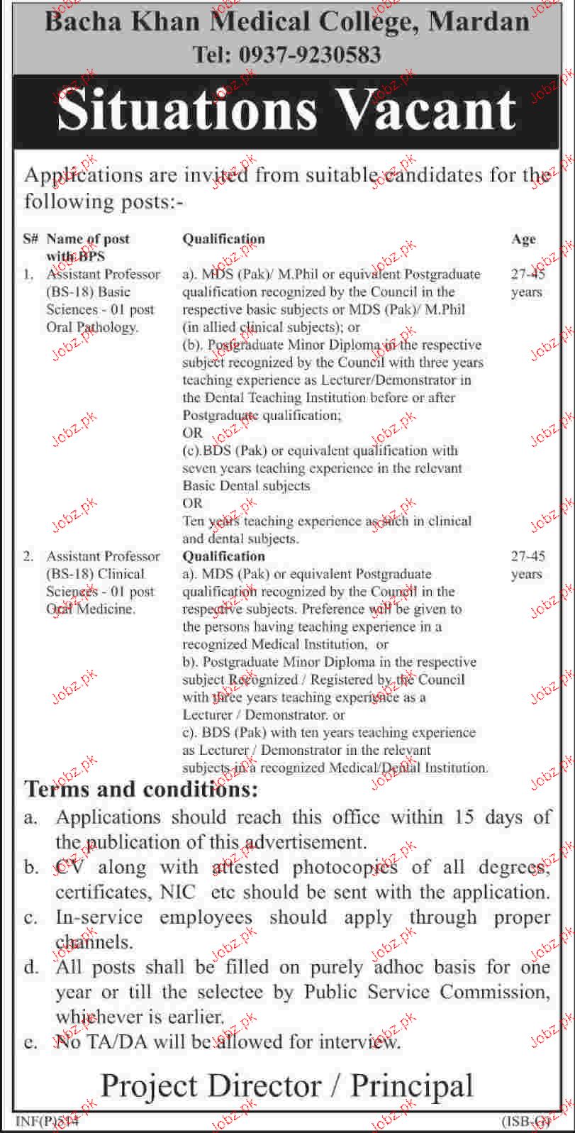 Latest Bacha Khan Medical College Mardan Teaching Posts Mardan 2025