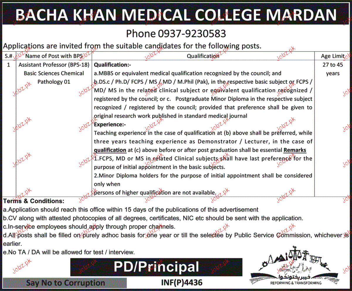 Latest Bacha Khan Medical College Mardan Teaching Posts Mardan 2025