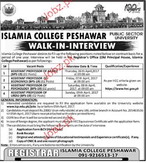 Assistant Professors Job In Islamia College