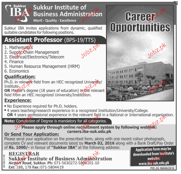 Apply as per details in job advertisement. Login to view further details of how to apply via https://www.jobz.pk online.