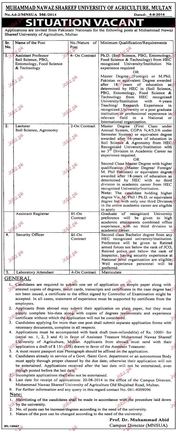 Apply as per details in job advertisement. Login to view further details of how to apply via https://www.jobz.pk online.