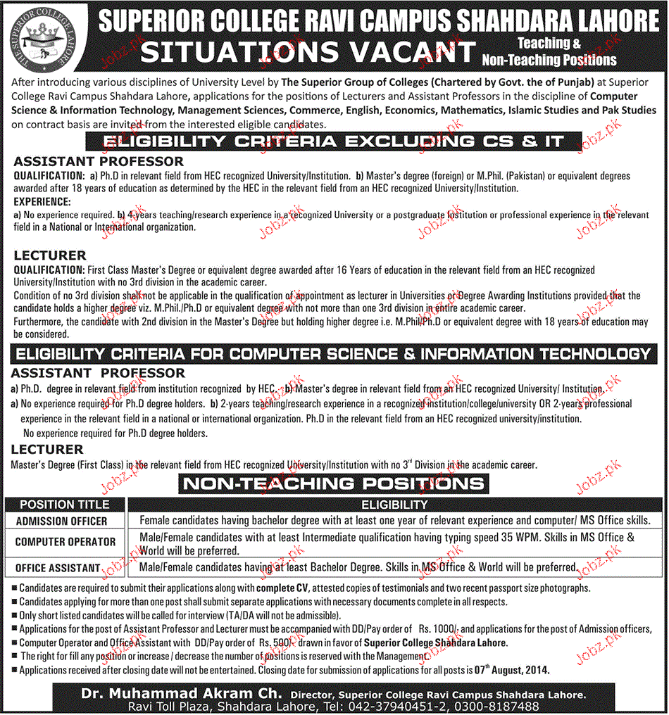 Apply as per details in job advertisement. Login to view further details of how to apply via https://www.jobz.pk online.