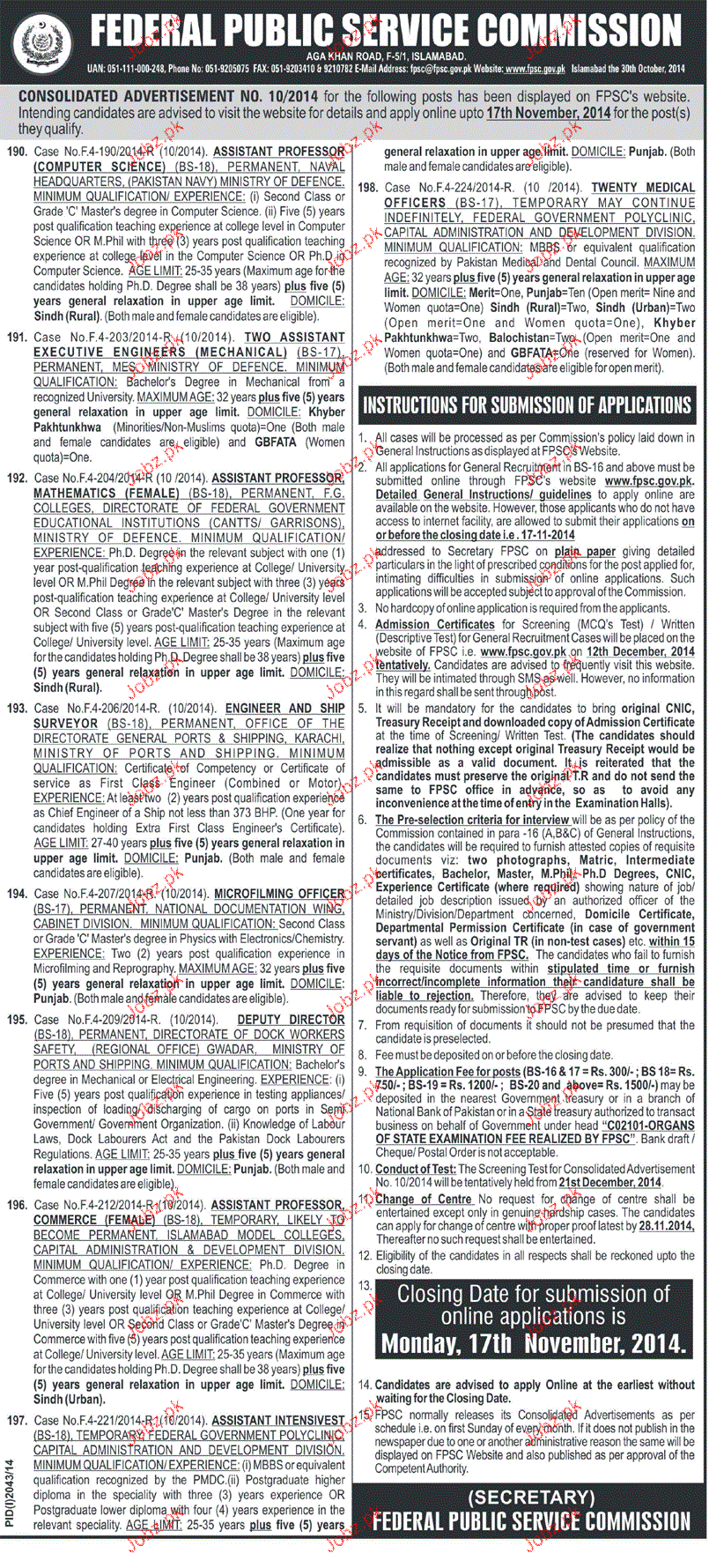 Assistant Professors, Medical Officers, Engineer Job In FPSC