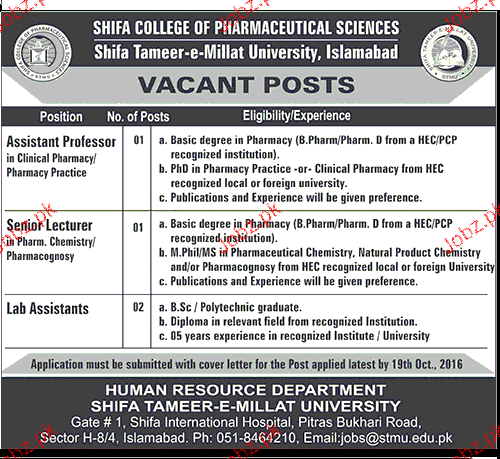 Apply as per details in job advertisement. Login to view further details of how to apply via https://www.jobz.pk online.