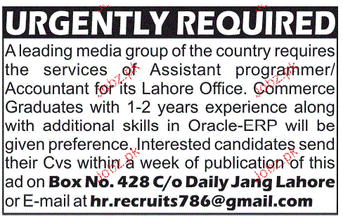 Apply as per details in job advertisement. Login to view further details of how to apply via https://www.jobz.pk online.