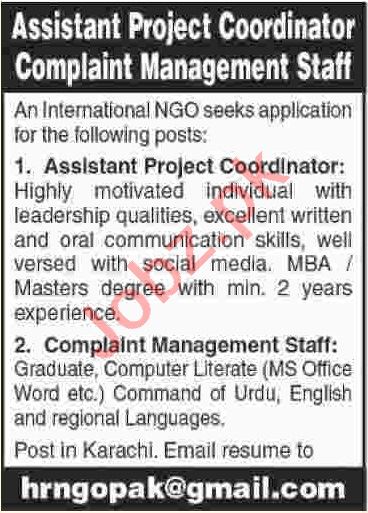 Assistant Project Coordinator & Management Staff Jobs 2020