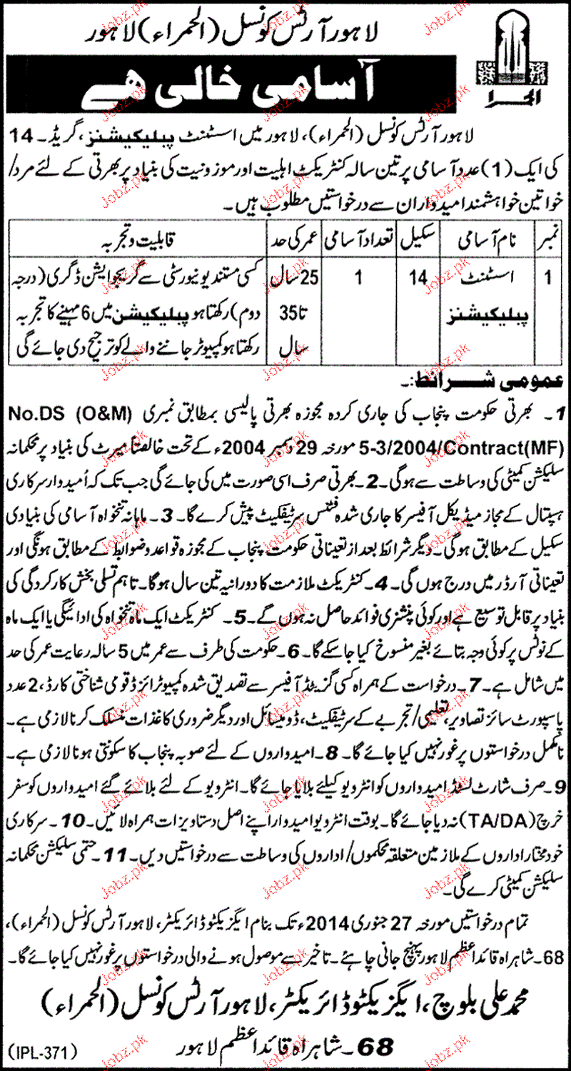 Assistant Publications Job In Lahore Arts Council