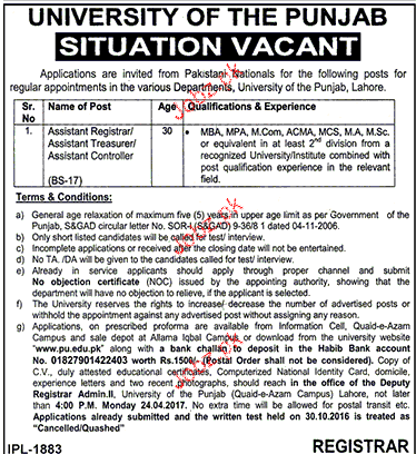 Assistant Registrar / Assistant Treasurer Job In University