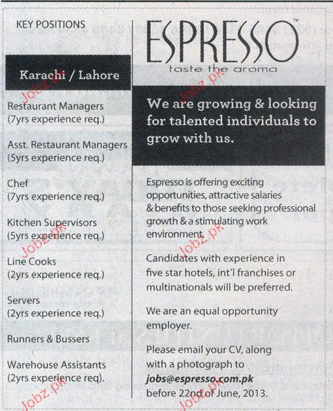 Assistant Restaurant Manager, Kitchen Supervisors Wanted