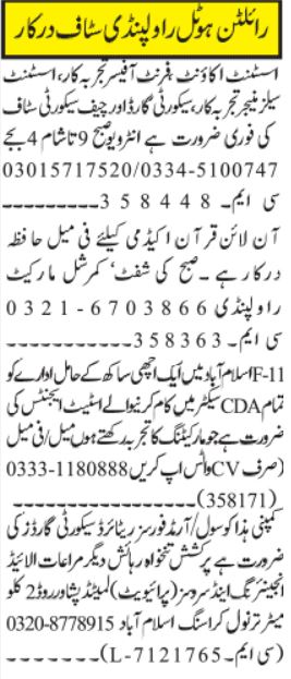 Private Company is looking for candidates for following posts as per job advertisement published in daily Jang Newspaper of August 27, 2022 for location Islamabad, rawalpindi Islamabad Pakistan: