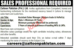 Apply as per details in job advertisement. Login to view further details of how to apply via https://www.jobz.pk online.