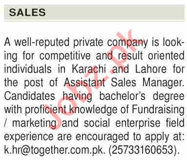 Assistant Sales Manager & Marketing Executive Jobs 2021