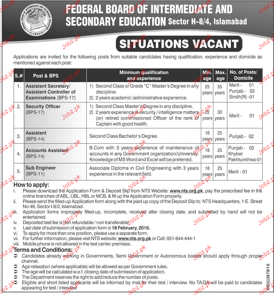 How to Apply on Board of Intermediate and Secondary Education BISE Job Advertisement