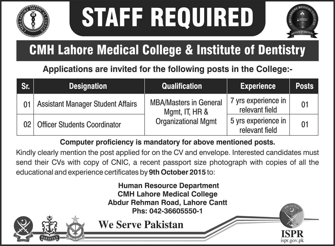 Latest CMH Lahore Medical College Management Posts Lahore 2025