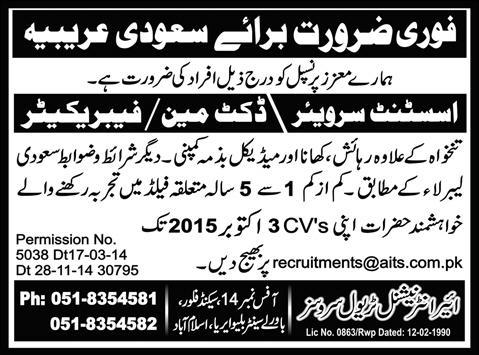 Assistant Surveyors, Ductman and Fabricators Wanted
